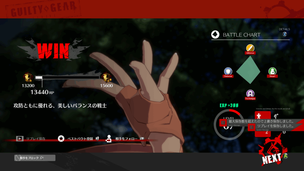 思えば数ヶ月に渡ってモチベが一定以上で続いているのはGGST初心者鯖というDiscordのコミュニティに参加したことが大きいのかも。チャットやプレマ等に積極的に参加してるわけではないけど、連日盛り上がってたり「ランク上がった!」みたいな報告が上がってたりするのを見ると「自分もやるか~」という気になるんですよね。また、11月には初めてオフライン対戦会に行ってみるなどしました。自分なんかより全然強い人が多くてガクブルだったし実際ボコボコにされたりしましたが、色んな人との交流ができて楽しかったです。来年1月にも大阪でデカい大会・対戦会があるので遊びに行ってみようかなと考えてたり。